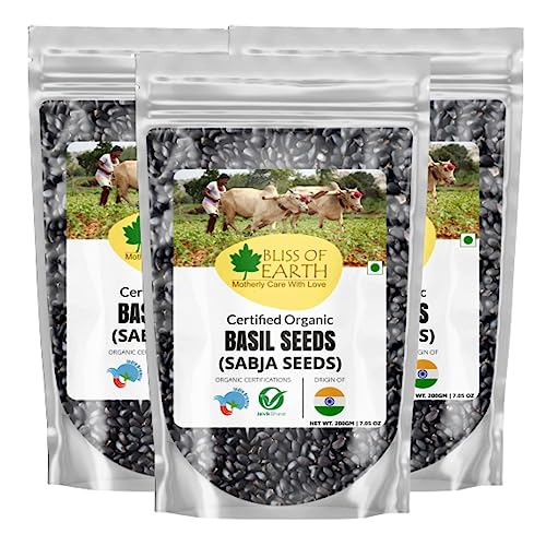 Bliss of Earth Certifed Organic Basil Seeds (Sabja) are used to add a unique flavour in food and beverages. basil seeds is a natural source of protien high in fiber a good source of minerals rich in plant base omega-3 fat & carbs. Preferably it can be eaten after soaking them in water for few minutes with many dishes.
