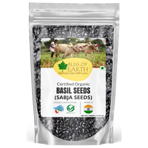 Bliss of Earth Certifed Organic Basil Seeds (Sabja) are used to add a unique flavour in food and beverages. basil seeds is a natural source of protien high in fiber a good source of minerals rich in plant base omega-3 fat & carbs. Preferably it can be eaten after soaking them in water for few minutes with many dishes.