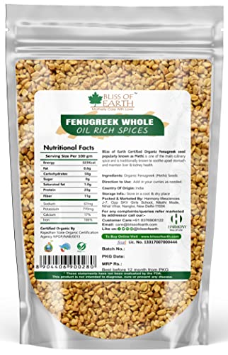 Bliss of Earth Certified Organic 2x200gm Fenugreek seed (Sabut Methi Dana) spices and masala For | hair grow | Boosting metabolism & Immunity | Weight Loss | Healthy cooking
