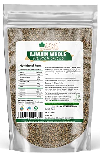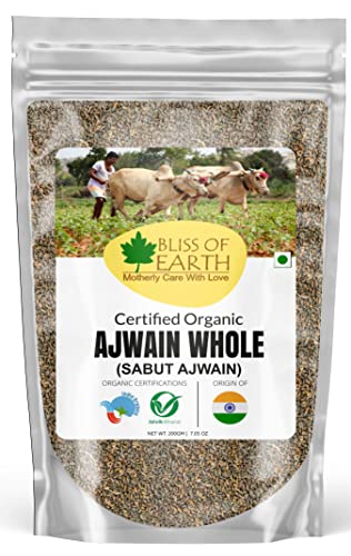 Bliss of Earth Certified Organic Ajwain/Carom Seeds/Indian Spices & Masala For Better Hair, Skin, Health & Cooking (200 grams)