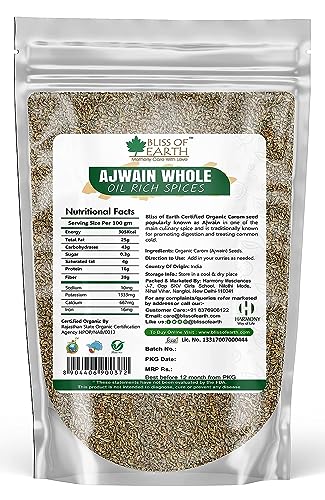 Bliss of Earth Certified Organic Ajwain/Carom Seeds/Indian Spices & Masala For Better Hair, Skin,Health & Cooking (500gm)