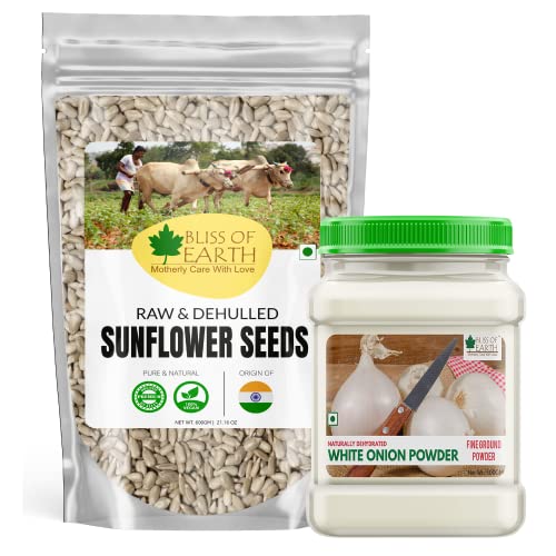 Bliss Of Earth Combo Natural White Onion Powder (500Gm) For Cooking & Hair Growth And Dehulled Sunflower Seeds (600Gm) for Eating & Weight Loss (Pack Of 2)