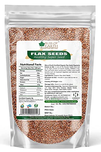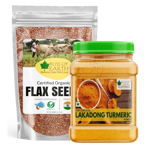 Bliss of Earth Combo Of High Curcumin Certified Organic Lakadong Turmeric Powder (500GM) And Organic Raw Flax Seeds (600gm) for Eating and Weight Loss, Rich in Omega (Pack Of 2)