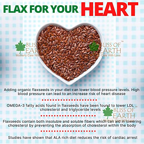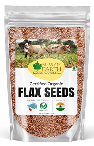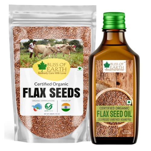 Bliss of Earth Certified Organic Flax Seeds popularly known as Alsi is one of the popular health food due to its high content of hearth healthy OMEGA-3 fats fiber and other plant compounds. It offers many health benefits such as improved digestion and reduced risk of heart disease. A lesser known but power-packed addition to your skin hair and health care regimen it is tough for Flax seeds oil to hide its light under a bushel. Given its exceptionally impressive nutritional profile it is small wonder that Flaxseeds oil is slowly but steadily earning its much-deserved spotlight.With its nutty slightly sweet flavour a tablespoon of flaxseed oil if consumed wouldnât compel your nose to crinkle and taste buds foment a rebellion. That spells good news for all the health freaks out there looking to redo their diet plans.Flaxseed oil contains 50- 60 percent omega-3 fatty acids in the form of alpha-linolenic acid(ALA). Omega-3 fatty acids play a salient role in all sorts of bodily processes from inflammation to heart health to cognitive functions.Topical application of Flax seeds oil helps nourish skin by quenching its thirst for moisture imparting suppleness and healing cracks. Your tresses are left smoothed-out frizz-free and lustrous without a non-oily look.Checks all the boxes right?Waitthereâs more. Bliss of Earthâs Certified Organic Flax seeds oil is cold-pressedunrefined free from any kind of preservatives or chemicals cruelty-free and vegan. Now does it check all the boxes correct?We are sure it does. Nourish yourself naturally inside out!