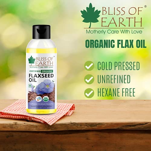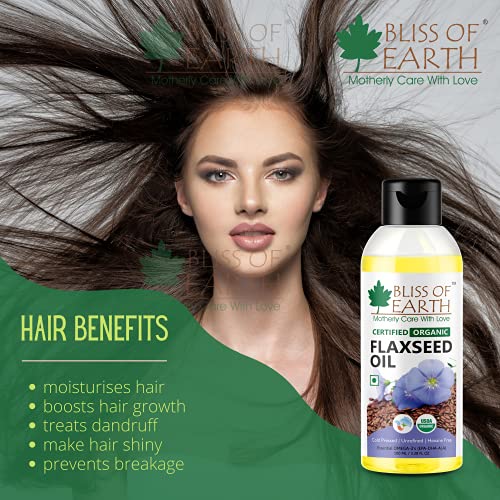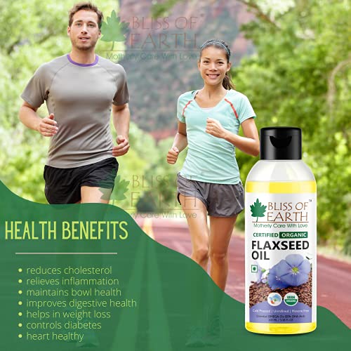 Bliss of Earth Certified Organic Flax Seeds popularly known as Alsi is one of the popular health food due to its high content of hearth healthy OMEGA-3 fats fiber and other plant compounds. It offers many health benefits such as improved digestion and reduced risk of heart disease. A lesser known but power-packed addition to your skin hair and health care regimen it is tough for Flax seeds oil to hide its light under a bushel. Given its exceptionally impressive nutritional profile it is small wonder that Flaxseeds oil is slowly but steadily earning its much-deserved spotlight.With its nutty slightly sweet flavour a tablespoon of flaxseed oil if consumed wouldnât compel your nose to crinkle and taste buds foment a rebellion. That spells good news for all the health freaks out there looking to redo their diet plans.Flaxseed oil contains 50- 60 percent omega-3 fatty acids in the form of alpha-linolenic acid(ALA). Omega-3 fatty acids play a salient role in all sorts of bodily processes from inflammation to heart health to cognitive functions.Topical application of Flax seeds oil helps nourish skin by quenching its thirst for moisture imparting suppleness and healing cracks. Your tresses are left smoothed-out frizz-free and lustrous without a non-oily look.Checks all the boxes right?Waitthereâs more. Bliss of Earthâs Certified Organic Flax seeds oil is cold-pressedunrefined free from any kind of preservatives or chemicals cruelty-free and vegan. Now does it check all the boxes correct?We are sure it does. Nourish yourself naturally inside out!