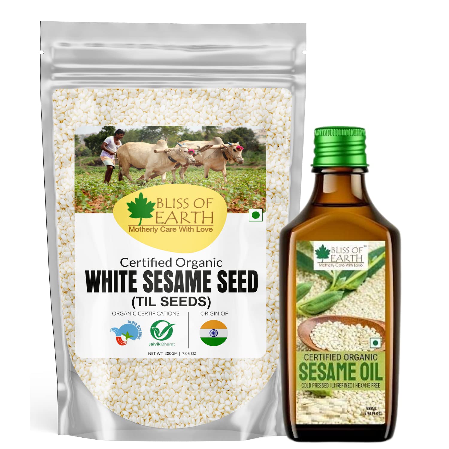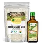 Bliss of Earth Combo Of Organic White Sesame Seeds (600gm) For Eating And Organic White Sesame Oil (500ml) for Massage, Cooking & Eating, Cold Pressed & Hexane Free (Pack Of 2)