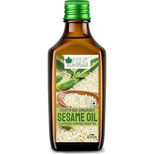 Bliss of Earth Organic White Sesame seeds are dehulled and are excellent source of copper calcium omega fatty acids iron magnesium phosphorus zinc and selenium. Sesame Seeds are also a good source of fiber with a rich nutty flavour. Called the "queen of oil seeds" these tiny seeds are a go-to topping on breadsticks and burger buns. Ingredients: Organic Sesame Seeds Bliss of Earth Organic Sesame Oil is extracted by cold pressing of white sesame seeds without using hexane. Sesame seeds are rich sources of protein vitamins and antioxidants. It has an ability to generate heat and energy in the body and its numerous beauty and hair benefits sesame seeds are loaded with nutrition that makes it a must-have in your winter diet.