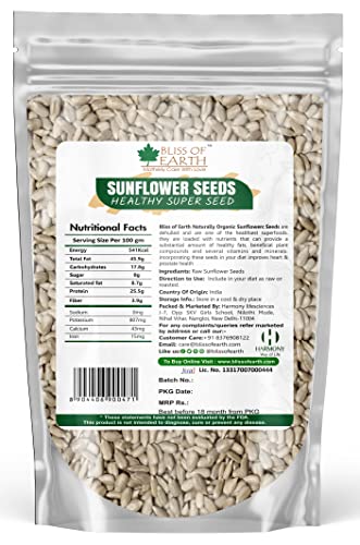 Bliss of Earth Naturally Organic Sunflower Seeds are dehulled and are one of the healthiest superfood. They are loaded with nutrients that can provide a substantial amount of healthy fats beneficial plant compounds and several vitamns and minerals. Incorporating these seeds in your diet improves heart health & prostate health.