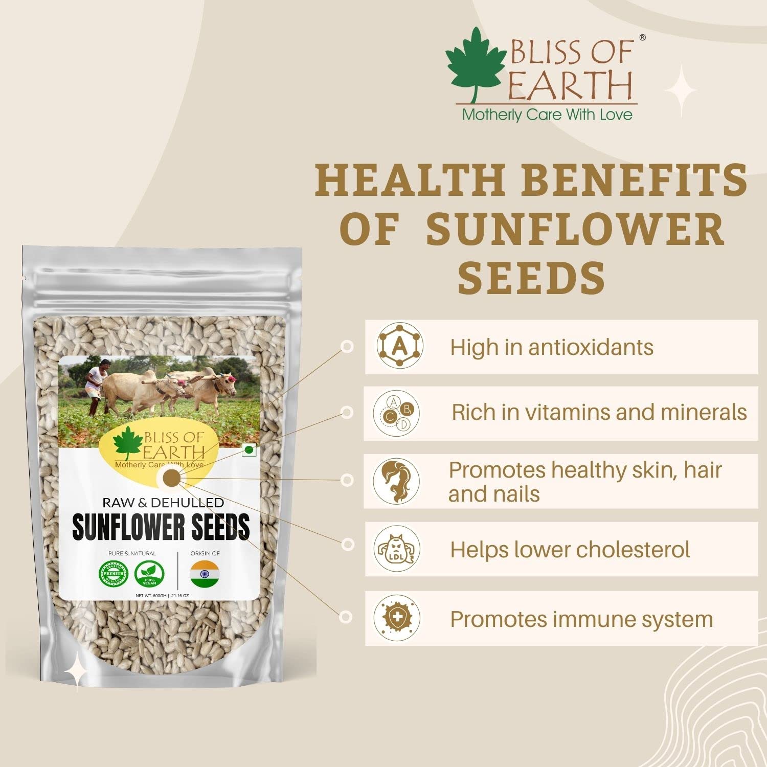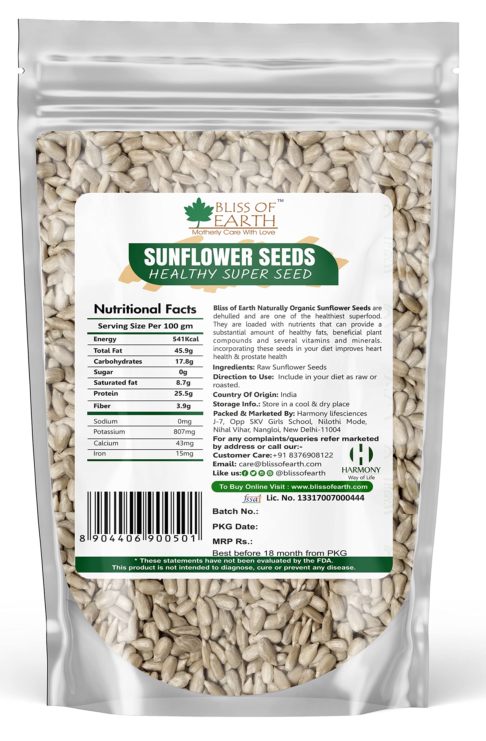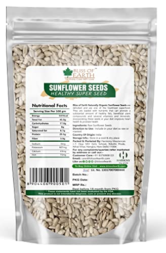 Bliss of Earth Naturally Organic Sunflower Seeds are dehulled and are one of the healthiest superfood. They are loaded with nutrients that can provide a substantial amount of healthy fats beneficial plant compounds and several vitamns and minerals. Incorporating these seeds in your diet improves heart health & prostate health.