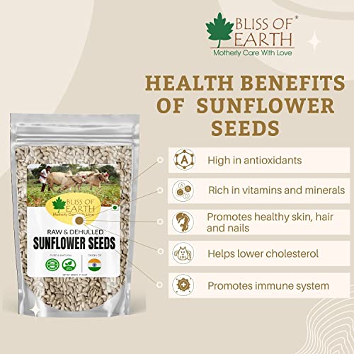 Bliss of Earth Naturally Organic Sunflower Seeds are dehulled and are one of the healthiest superfood. They are loaded with nutrients that can provide a substantial amount of healthy fats beneficial plant compounds and several vitamns and minerals. Incorporating these seeds in your diet improves heart health & prostate health.