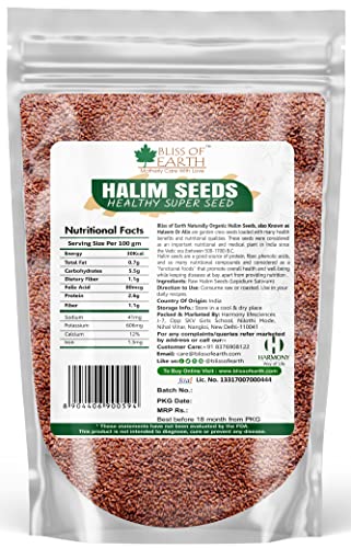 Bliss of Earth Naturally Organic Halim seeds also known as Haleem or Aliv are garden cress seeds loaded with many health benefits and nutritional qualities. These seeds were considered as an important nutritional and medicinal plant in India since the Vedic era (between 500? 1700) B.C. Halim Seeds are good source of protein fiber phenolic acids and so many nutritional compounds and considered as a functional foods that promote overall health and well-being while keeping diseases at bay apart from providing nutrition.