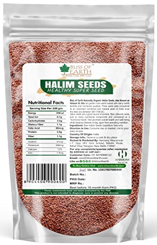 Bliss of Earth Naturally Organic Halim seeds also known as Haleem or Aliv are garden cress seeds loaded with many health benefits and nutritional qualities. These seeds were considered as an important nutritional and medicinal plant in India since the Vedic era (between 500? 1700) B.C. Halim Seeds are good source of protein fiber phenolic acids and so many nutritional compounds and considered as a functional foods that promote overall health and well-being while keeping diseases at bay apart from providing nutrition.