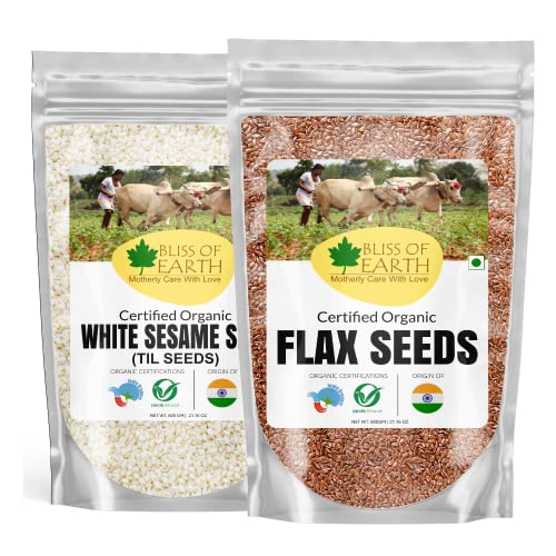 Bliss of Earth Organic White Sesame seeds are dehulled and are excellent source of copper calcium omega fatty acids iron magnesium phosphorus zinc and selenium. Sesame Seeds are also a good source of fiber with a rich nutty flavour. Called the queen of oil seeds these tiny seeds are a go-to topping on breadsticks and burger buns. Ingredients: Organic Sesame Seeds Bliss of Earth Certified Organic Flax Seeds popularly known as Alsi is one of the popular health food due to its high content of hearth healthy OMEGA-3 fats fiber and other plant compounds. It offers many health benefits such as improved digestion and reduced risk of heart disease.