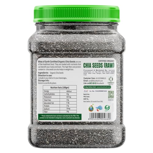 Bliss of Earth Certified Organic Chia Seeds are one of the healthiest food. They are loaded with nutrients that can benefit your body and brain. The high fiber and protein content in chia seeds can also helps in weight loss.