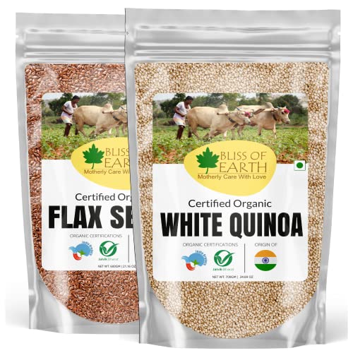 Bliss of Earth Organic Raw Flax Seeds(600gm)and White Quinoa(700gm) for Eating and Weight Loss, Rich in Omega