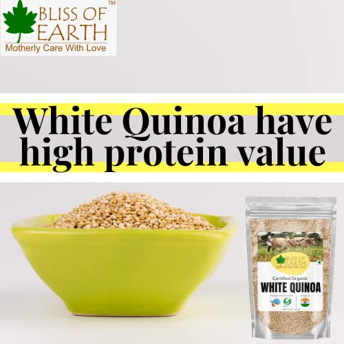 Bliss of Earth Certified Organic Flax Seeds popularly known as Alsi is one of the popular health food due to its high content of hearth healthy OMEGA-3 fats fiber and other plant compounds. It offers many health benefits such as improved digestion and reduced risk of heart disease. Bliss of Earth Certified Organic White Quinoa is one of the most popular healthfood. Its jigh in protein fiber magnesium B vitamins iron potassium calcium phosphorus vitamin E and various beneficial antioxidants. Its also one of the few plant foods that contain sufficient amount of all nine essential amino acids.