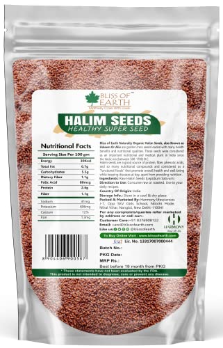 Bliss of Earth Naturally Organic Halim seeds also known as Haleem or Aliv are garden cress seeds loaded with many health benefits and nutritional qualities. These seeds were considered as an important nutritional and medicinal plant in India since the Vedic era (between 500? 1700) B.C. Halim Seeds are good source of protein fiber phenolic acids and so many nutritional compounds and considered as a functional foods that promote overall health and well-being while keeping diseases at bay apart from providing nutrition.