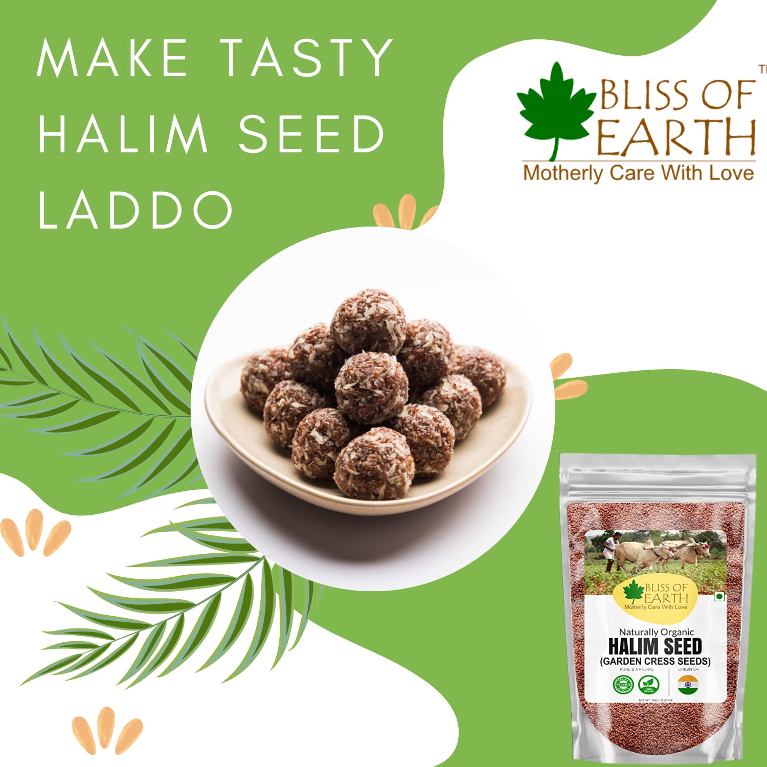 Bliss of Earth Naturally Organic Halim seeds also known as Haleem or Aliv are garden cress seeds loaded with many health benefits and nutritional qualities. These seeds were considered as an important nutritional and medicinal plant in India since the Vedic era (between 500? 1700) B.C. Halim Seeds are good source of protein fiber phenolic acids and so many nutritional compounds and considered as a functional foods that promote overall health and well-being while keeping diseases at bay apart from providing nutrition.