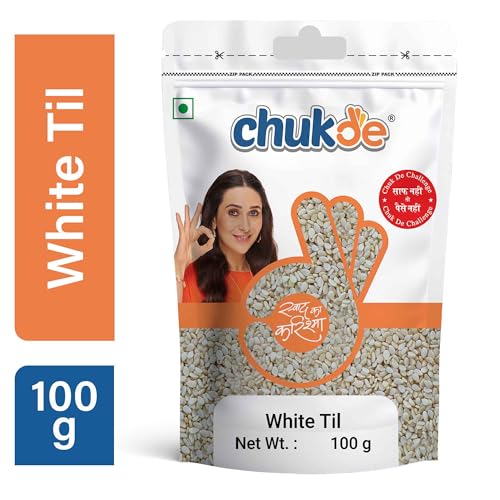 HomeGroceryNutsSeedsChukde - White Seasame (Safed Till) | Ideal for Topping Chutney Desserts Curry Seasoning | Good Source of Nutrients Supports Heart Health Promotes Bone Health | 100 Gm (Pack of 4)