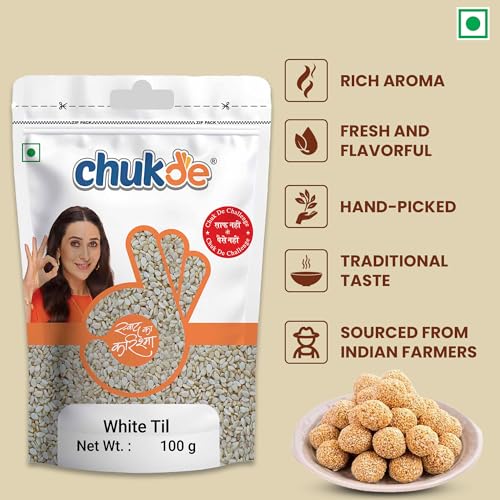 Chukde - White Seasame (Safed Till) | Ideal for Topping Chutney Desserts Curry Seasoning | Good Source of Nutrients Supports Heart Health Promotes Bone Health | 100 Gm (Pack of 4)