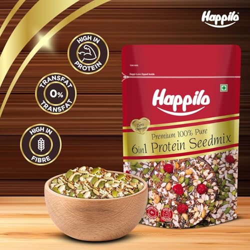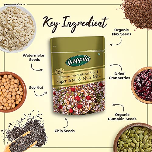 Happilo Premium 6 in 1 Super Seeds & Nuts Mix 250g (Pack of 2), Roasted Pumpkin Seeds, Flax Seeds, Watermelon Seeds, Chia Seeds, Soy Nut, Diet Snacks, Super Healthy Food, 27% Protein