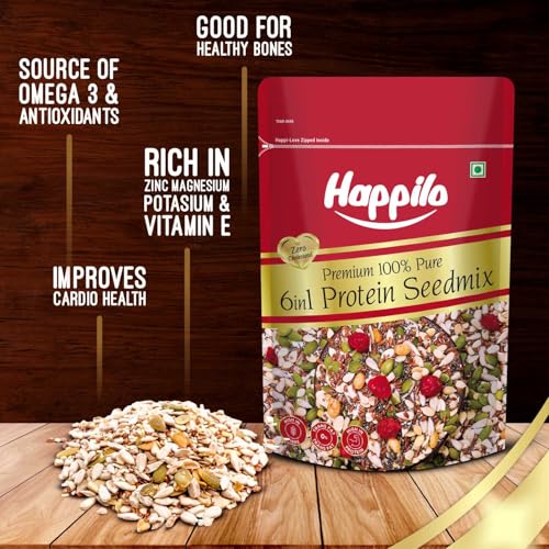 Happilo Premium 6 in 1 Super Seeds & Nuts Mix pack are often thrown away while consuming the fruit thereby not actually utilizing the advantages of the health benefits each and every seed provides. Happilo brings to you a premium combo of 5 Roasted seeds mix all of which possess their own specific health benefit. Being antioxidant-rich these seeds tend to protect your health from the unwanted foreign particles entering your body. Roasted Sunflower Pumpkin Flax with Watermelon seeds & Chia Seeds are a combination of healthy seeds for weight management. Quality assured - Happilo products are rigorously tested against the industry's best quality standards.