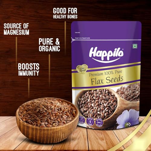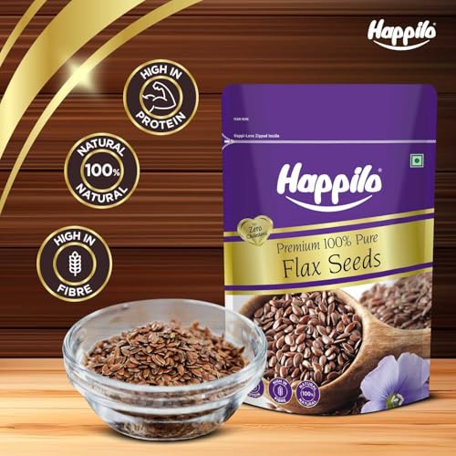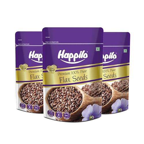 Happilo Premium Authentic Flax Seeds 250g each (Pack of 3), Diet Food for Weight Management, Alsi Seed for Hair Growth, Rich in Fiber and Omega 3