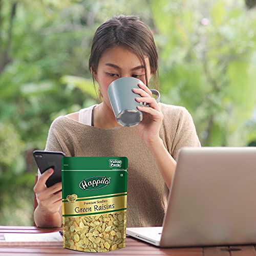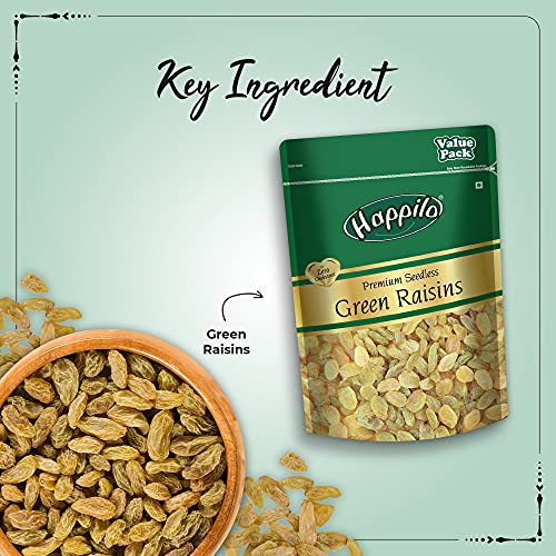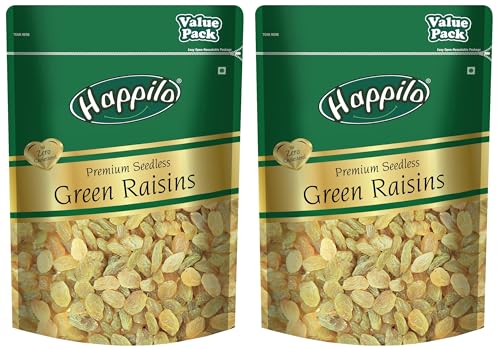 Happilo Premium Seedless Fresh Green Raisins Kishmish Nutritious Rich In Iron Value Pack 500Gram(Pack Of 2)