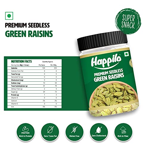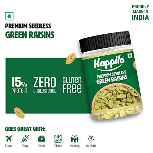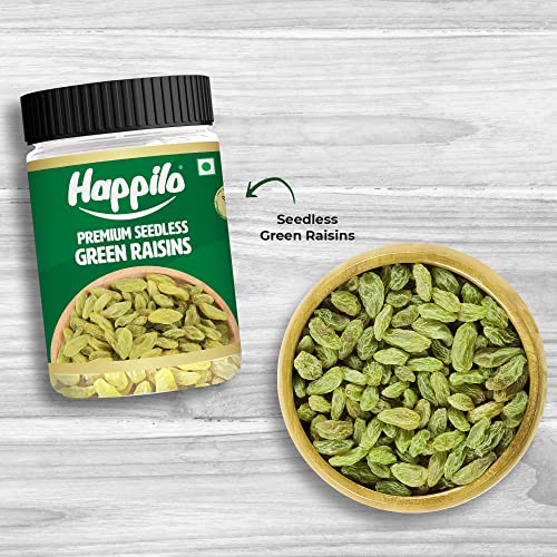 Happilo Premium Seedless Green Raisins 300g Jar, Premium Qaulity Kishmish, Nutritious, Rich in Iron & Vitamin B, Healthy Sweet Treats