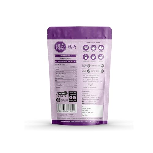 Heka Bites Raw Chia Seeds 250g | 100% Raw Seeds| Source of Omega -3 Fatty Acids and Calcium High in Dietary Fibre and Protein| Super Seeds| Diet Snacks