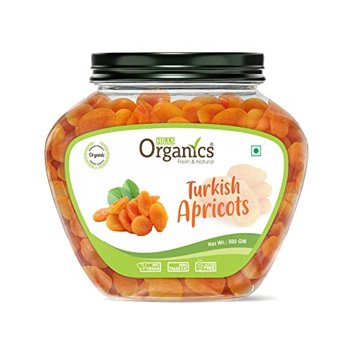 HILLS ORGANICS Apricot - 500 grams | 100% Fresh & Natural Sun Dried Seedless Turkish Apricots | Organic Jardalu Badam Dry Fruits | Khumani | Khubani | Zardalu - Jar Pack