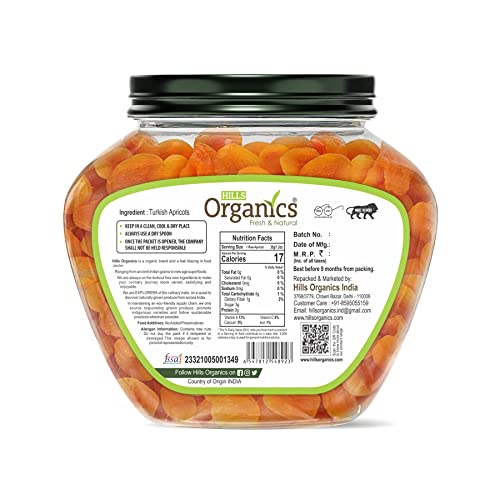 HILLS ORGANICS Dried Apricot 100% Fresh & Natural team traveled the world to get the finest gourmet dry fruits. They are one of the most nutritious dried fruits in the world they're a yummy healthy snack. Great for Snacking adding to Cereal Cooking and Baking. High Antioxidants Dietary Fiber No Gluten Non-GMO Zero Trans Fat & Zero Cholesterol. Daily need products for a healthy and energetic life. HILLS ORGANICS food grade with an airtight seal to ensure the product is protected and fresh. Quality assured - HILLS ORGANICS products are rigorously tested against the industry's best quality standards.
