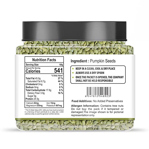 • 100% Fresh & Natural: Our pumpkin seeds are carefully sourced to ensure they are 100% fresh and natural providing you with a rich source of plant-based protein and dietary fiber. These seeds are perfect for adding a wholesome boost to your meals or enjoyi