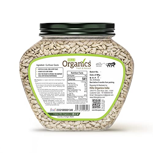 HILLS ORGANICS Sunflower Seeds are purely natural jumbo and unprocessed organic edible seeds extracted from a sunflower in their pure form. Sunflower Seeds for eating possess a mild nutty taste which cannot resist you from wanting it more and has a firm texture. Our seeds make a welcome addition to health-conscious diets. If you want to take the best care of your skin these sunflower seeds for your skin are a great addition to your skincare diet! Enjoy your sunflower seeds which are edible sunflower seeds with breakfast.