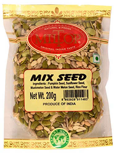 Miltop Pumpkin Sunflower Muskmelon Watermelon Seeds Mix 200g. Super Seed Mix for daily use. Shop the wide range of dry fruits, dried fruits, seeds, Jaggery and other healthy product range by Miltop. Choose dry fruits choose Miltop. We have ISO 22000 certified facility to pack export quality material hygienically. Shop Now !