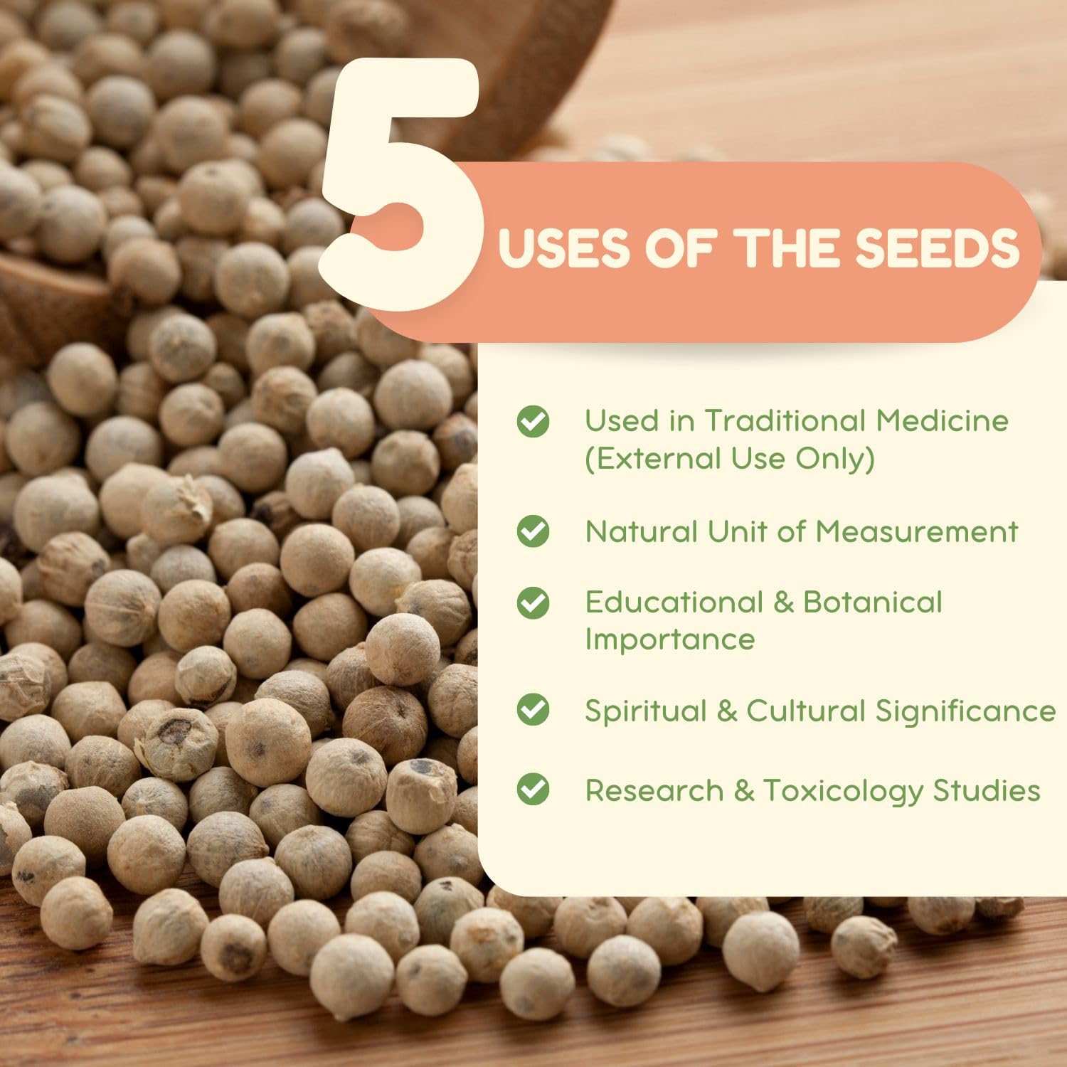 Discover the unique and traditional value of Neotea Vellai Kundumani Gulugunji Ratti Seeds (Abrus Precatorius â White Variety). Carefully sourced and hygienically packed these raw and unprocessed seeds are 100% natural and free from additives preservatives and harmful chemicals. Vellai Kundumani seeds have historical significance in traditional practices educational displays botanical studies and research applications. Known for their uniform weight these seeds were even used in ancient times as a natural unit of measurement (Ratti). This 100g pack is ideal for academic institutions herbal research and cultural purposes. Please note: These seeds are strictly for external educational or research use only. Not intended for consumption.