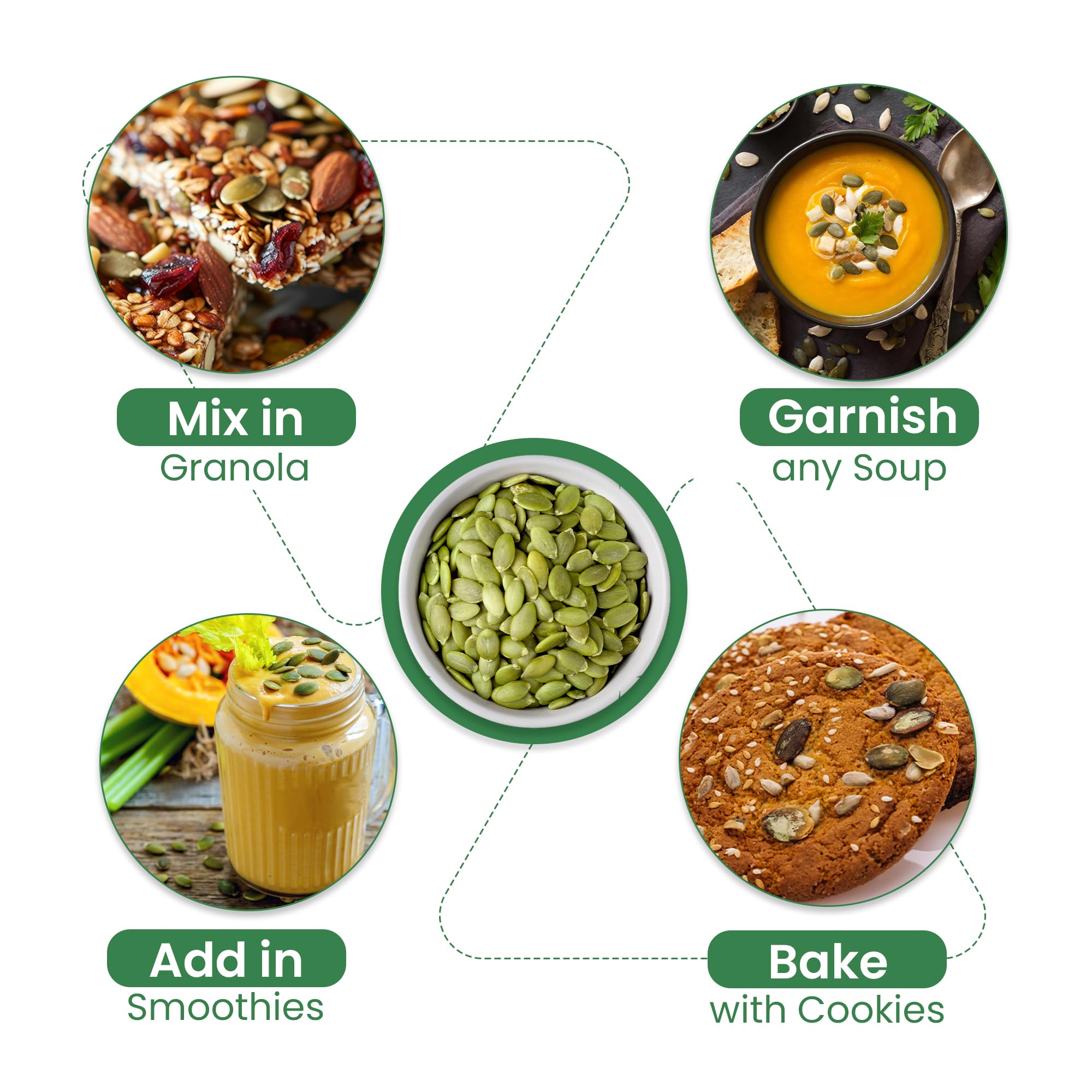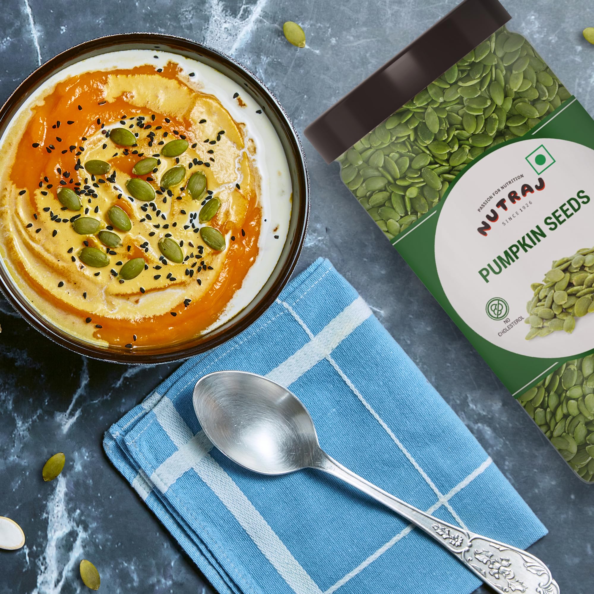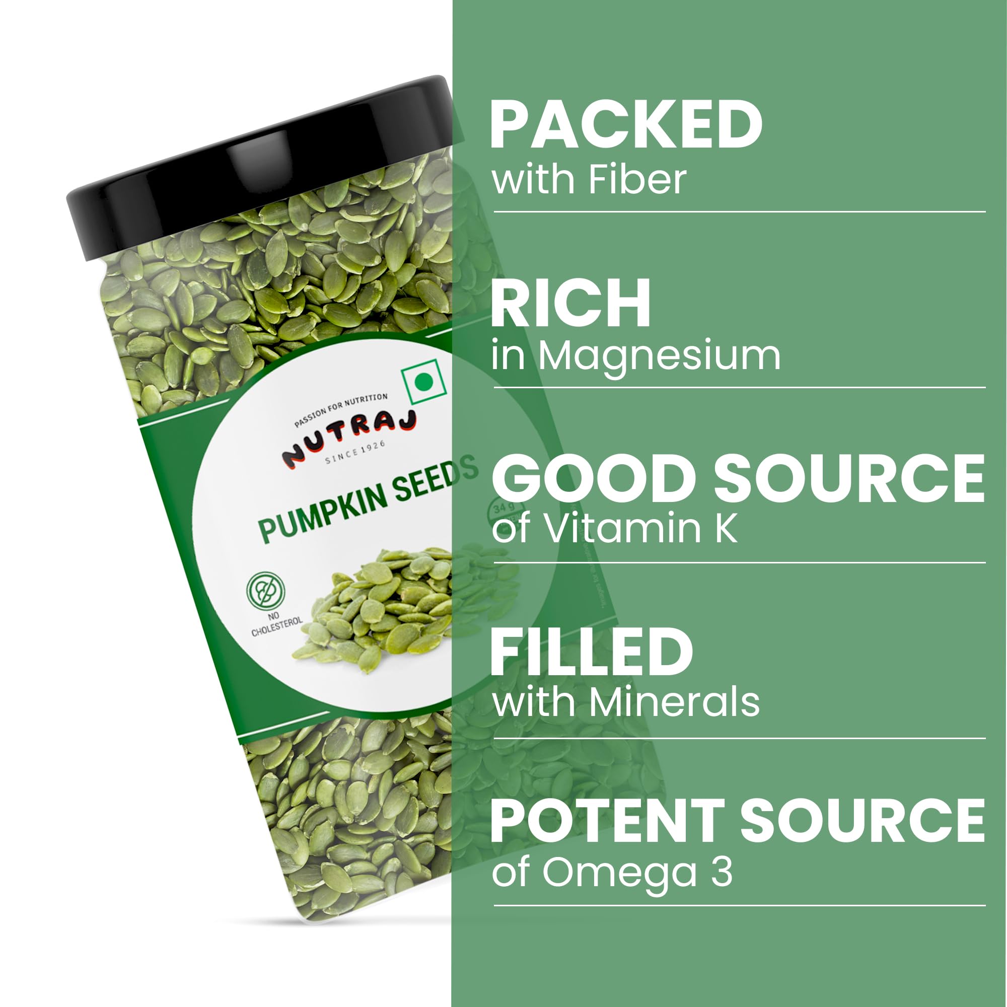 Pumpkin seeds are packed with numerous health benefits and antioxidants that help prevent certain type of diseases. Packed with the goodness of high dietary fiber magnesium and tryptophan pumpkin seeds may help maintain proper functioning of digestive system and promote good sleep. Add a hand full of Nutlounge Pumpkin Seeds to your diet to squeeze out its maximum benefits.