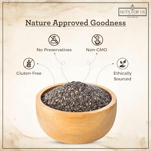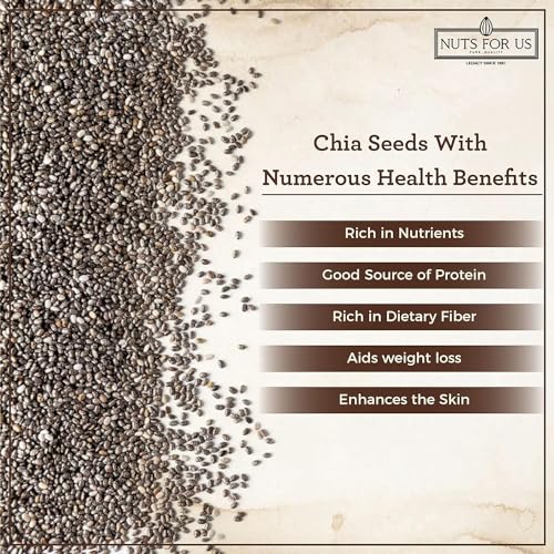 Nuts for Us Chia Seeds our 250 GM package of black raw chia seeds is a perfect addition to any healthy diet packed with essential nutrients like calcium omega-3 fatty acids and fiber. Known for their high antioxidant content chia seeds help combat premature aging by neutralizing free radicals that can damage your cells. These tiny seeds are not only great for your health; they also add a delightful nutty flavor to your favorite meals making them a versatile ingredient for smoothies salads yogurt and baked goods. Chia seeds are celebrated for their ability to improve bone health due to their rich content of calcium phosphorus and magnesium. Regular consumption can also help reduce chronic inflammation in the body lowering the risk of serious conditions like heart disease and cancer. Plus with their low-calorie profile these seeds make it easy to meet your daily nutritional needs without excess calories. Embrace the power of chia seeds for a healthier happier you!
