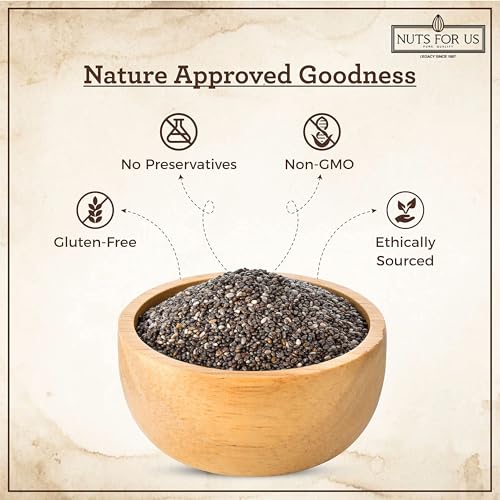 Nuts for Us Raw Chia seeds Pack of 2 are one of the most versatile nutritional powerhouses and provide a plethora of health benefits. They can absorb up to 9 times their weight in liquid. Chia Seeds can also be added to your favorite delicacies to give them an element of crunch texture and flavor. This product is Vegetarian. Vegan NON GMO gluten free High dietary fibre Rich in calcium Rich in antioxidants Rich in minerals such as Omega- 3s potassium iron These chia seeds are a very rich source of calcium which can help in improving the mineral bone density. Chia seeds are low in calories and cholesterol which can help in lowering and maintaining the blood sugar levels. They are great for preventing binge eating being a rich source of fibre they provide a feeling of fullness Chia seeds are great for hard and skin as they are a rich source of omega-fats especially omega-3 and omega-6 fatty acid. Chis seeds prevent premature aging of skin as they are a rich source of antioxidants