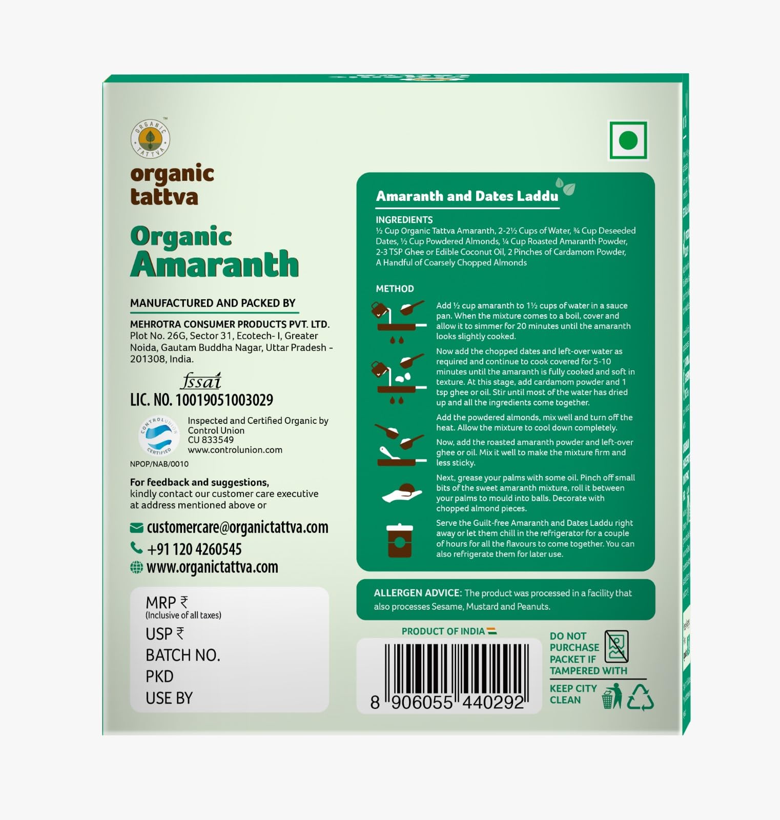 Amaranth is derived from the seeds of the amaranth plant. It has grown in popularity because it's gluten-free rich in fiber and protein and have anti-inflammatory properties. While some say amaranth equals fasting at Organic Tattva we believe Amaranth is fasting + gluten free eating + baking and more! Organic Tattva's organic amaranth Seeds is a nutritious powerhouse of fiber micronutrients and is naturally gluten free and it tops the list of natural protein packed flours. Contrary to common belief amaranth uses range from Indian flat breads to cookies and savouries. When mixed with flours like almond or wheat amaranth or âRajgira flour' as some call it makes for great breads too. So whether you are fasting or trying to build health âfast' this alternate grain Seedsis here to stay in your kitchen!