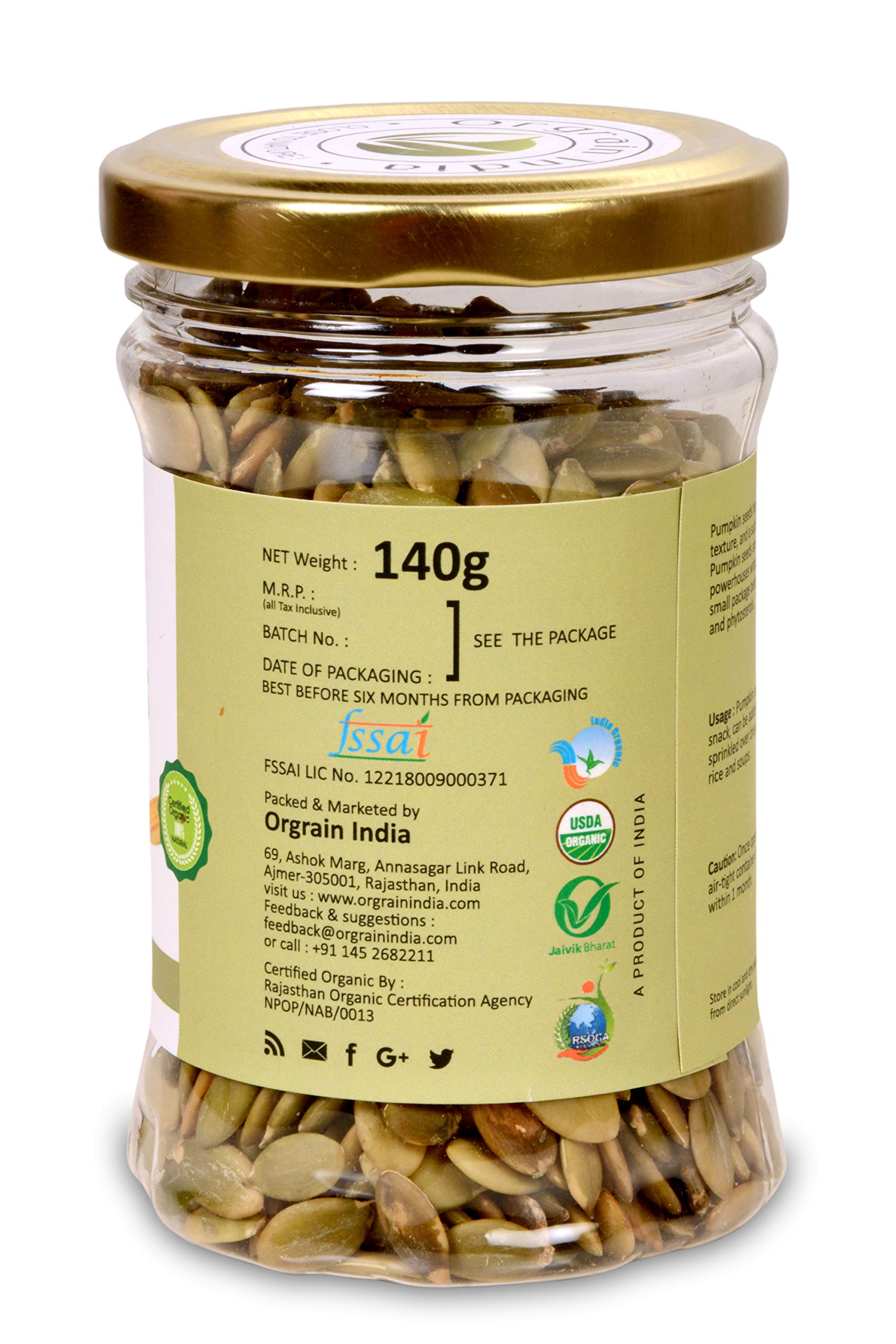Orgrain India Organic Pumpkin Seeds 140g | Rich in Protein & Fiber | Diet Snacks | Helps In Boosting Immunity | AAA Grade Pumpkin Seeds for Eating | Pumpkin Seeds for Weight Loss