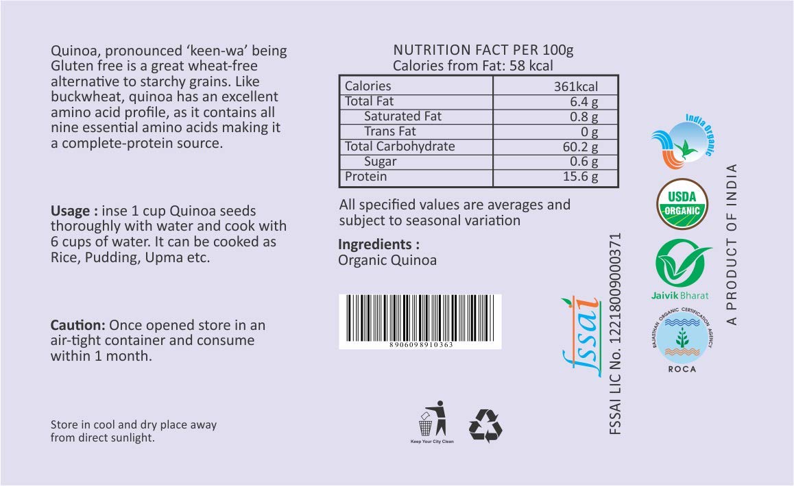 Orgrain India Organic Quinoa Seeds 200g | Gluten Free High Fibre Best for Weight Loss | Company-Owned Farmlands