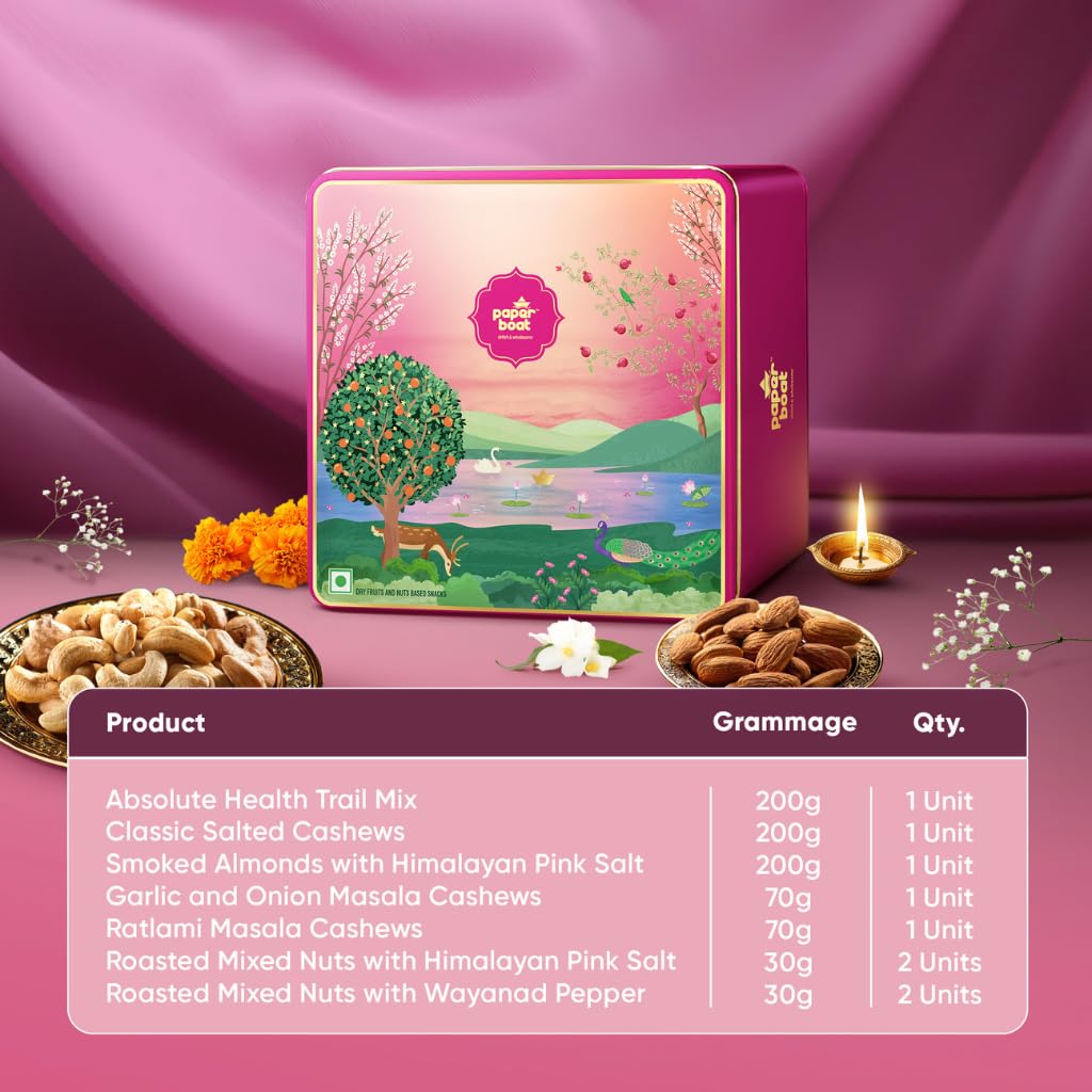 Paper Boat Diwali Dry Fruits Gift Box 860g - Diwali Gift Hamper | Festive Dry Fruit Gift | Assorted Mixed Nuts Dry Fruits & Trail Mix | Cashew Almonds Berries and Mixed Nuts
