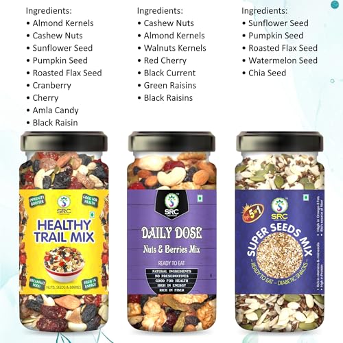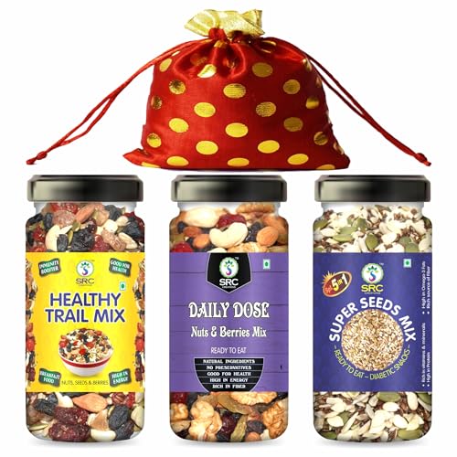 SRC CREATIONS Mix Dry Fruits Gift Pack Potli (Healthy Trail Mix 100g+Daily Dose 100g+Super Seeds Mix 100g = 300g) Gifts for Family and Friends|Corporate Gifting|Diwali Gifts