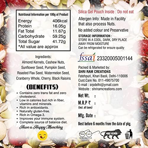 SRC CREATIONS Superfood Mix | Nuts-Seeds-Berries Mixture | Ready to eat | Breakfast Food (500g)