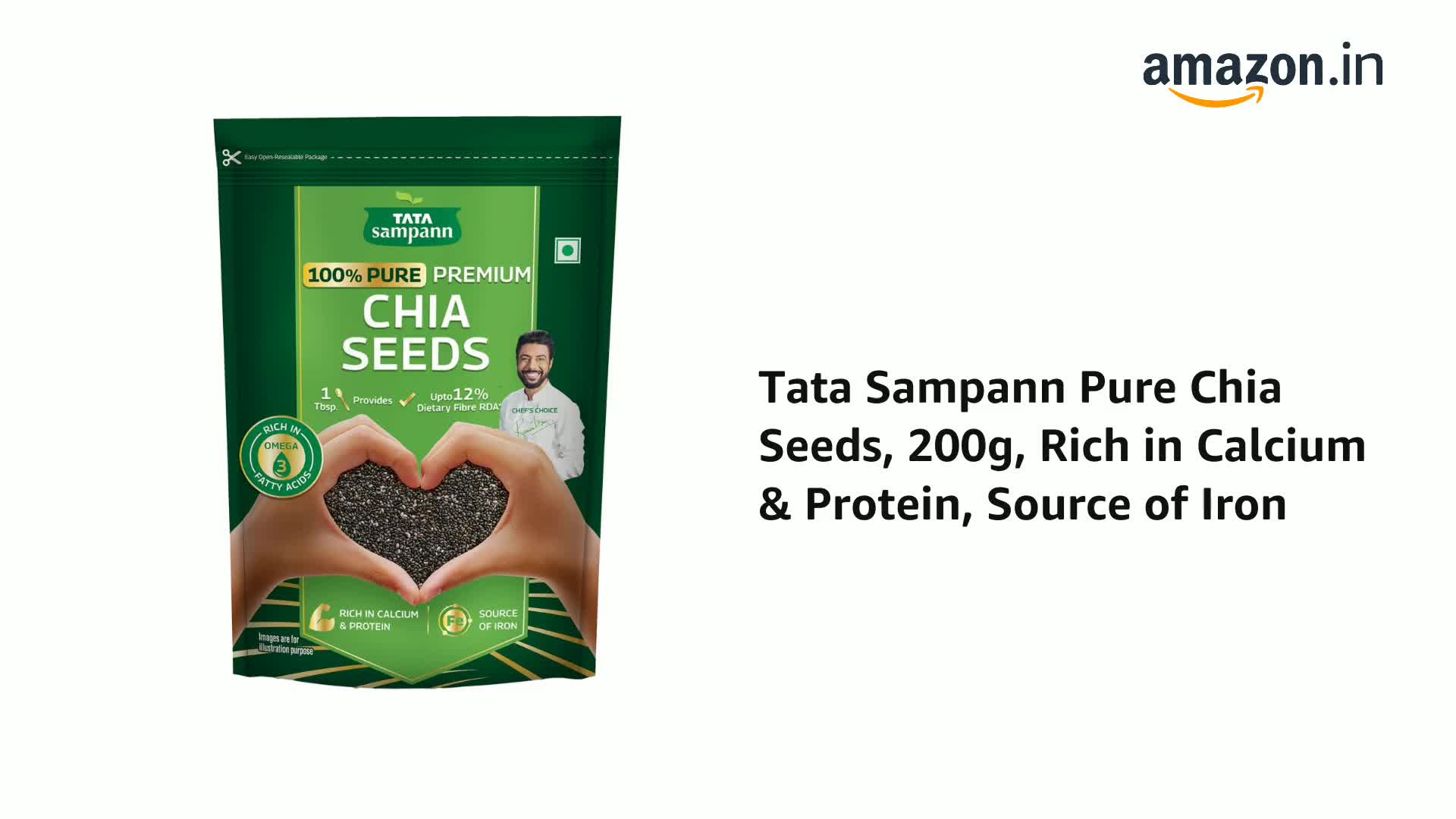 Tata Sampann Pure Chia Seeds, 200g, Rich in Calcium & Protein, Source of Iron