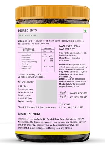 Introducing Teacurry Organic Milk Thistle Seeds a natural powerhouse offering a range of wellness benefits. Meticulously sourced and perfected these seeds provide a comprehensive approach to well-being. Celebrated for their support in digestive wellness they contribute to a balanced digestive system and optimal health. Additionally these seeds are traditionally linked to enhancing breastfeeding production offering natural support for breastfeeding mothers. Moreover Teacurry Organic Milk Thistle Seeds promote skincare by harnessing properties ensuring radiant and healthy skin. Embark on a holistic wellness journey with the purity and potency of Teacurry Organic Milk Thistle Seeds designed to nurture your body from the inside out.
