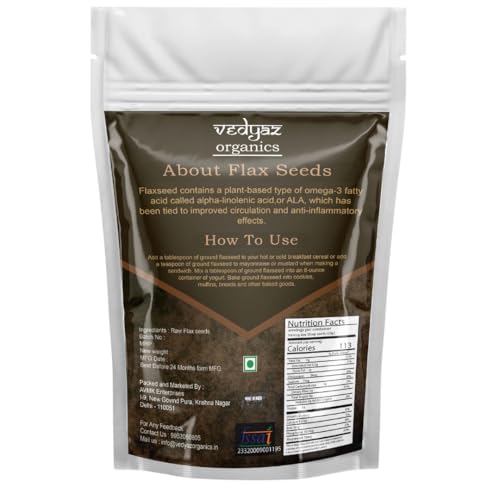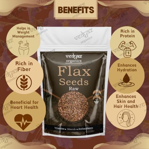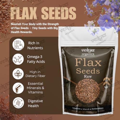Harness the natural goodness of flax seeds with Vedyaz Organics Flax Seeds. Packed with essential nutrients and boasting numerous health benefits our premium-quality flax seeds are a must-have addition to your daily diet. Sourced from organic farms and carefully processed to retain their nutritional value our flax seeds are a testament to purity and quality.Whether sprinkled over your morning oatmeal blended into smoothies or used as a crunchy topping for salads Vedyaz Organics Flax Seeds offer a convenient way to boost your overall wellness.Rich in omega-3 fatty acids fiber and lignans our flax seeds promote heart health aid digestion and support radiant skin and hair. Each batch is carefully processed to retain maximum freshness and potency ensuring that you receive nothing but the best nature has to offer.