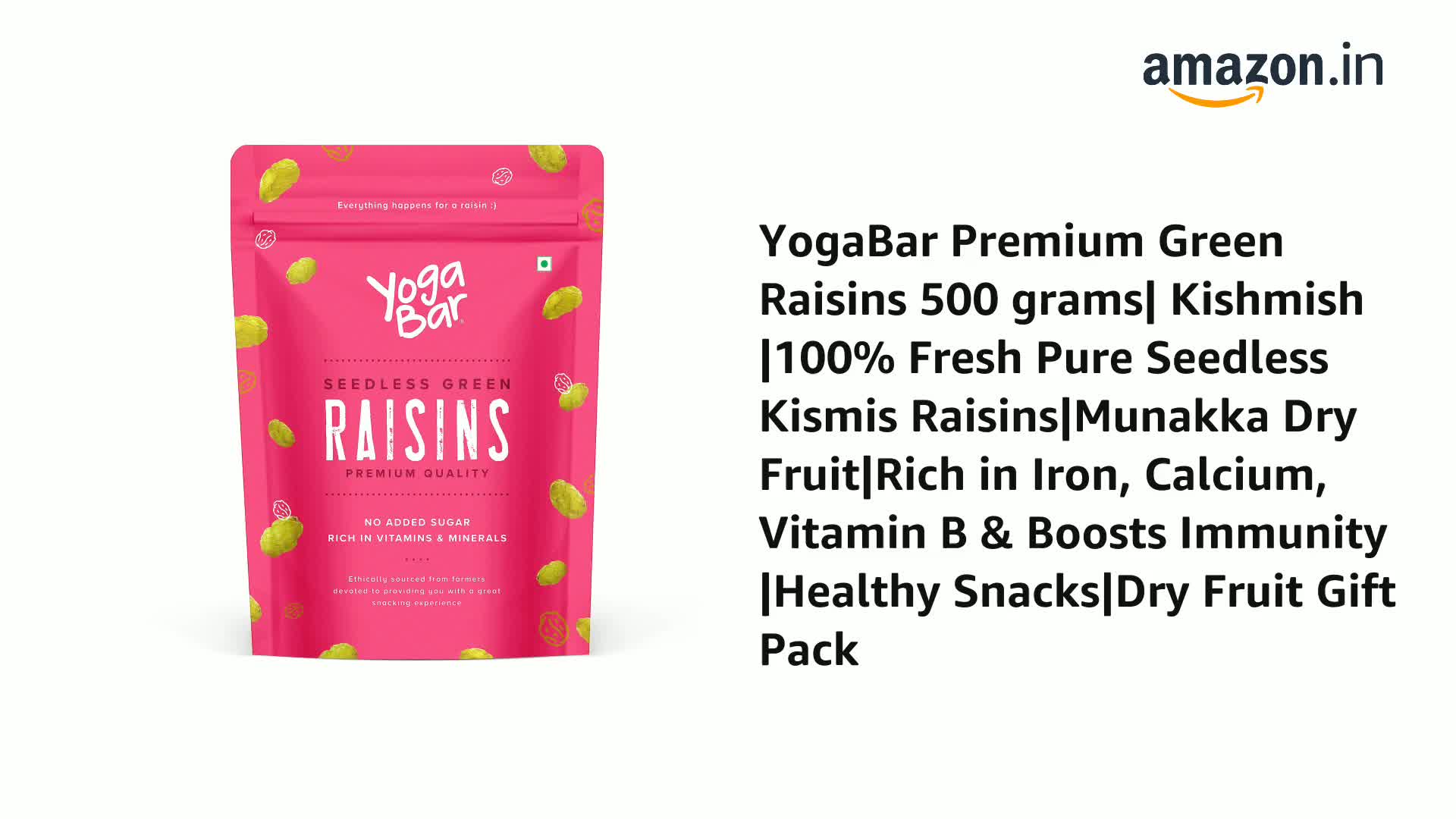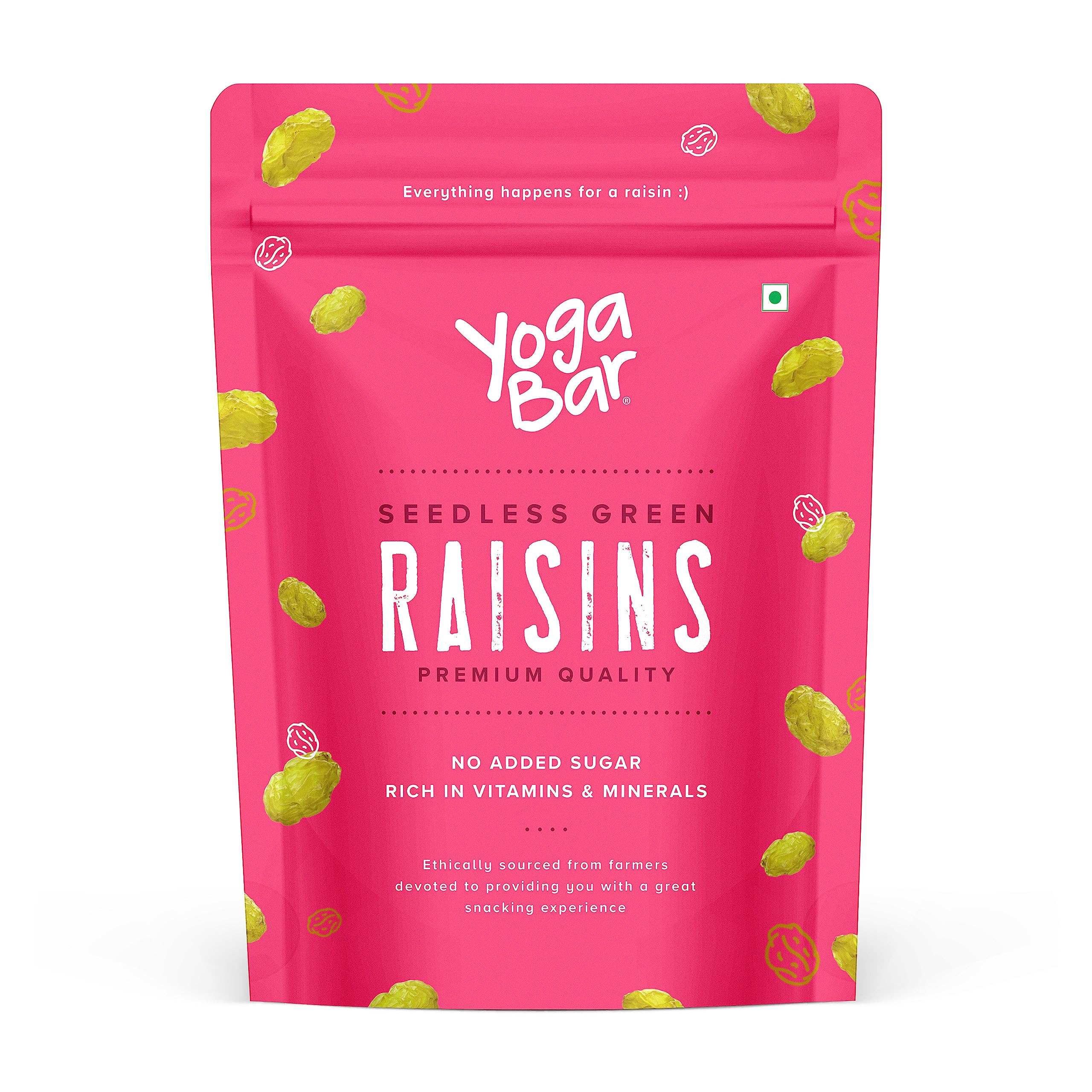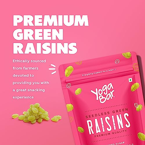 HomeGroceryNutsSeedsYogaBar Premium Green Raisins 500 grams| Kishmish |100% Fresh Pure Seedless Kismis Raisins|Munakka Dry Fruit|Rich in Iron, Calcium, Vitamin B & Boosts Immunity |Healthy Snacks|Dry Fruit Gift Pack
