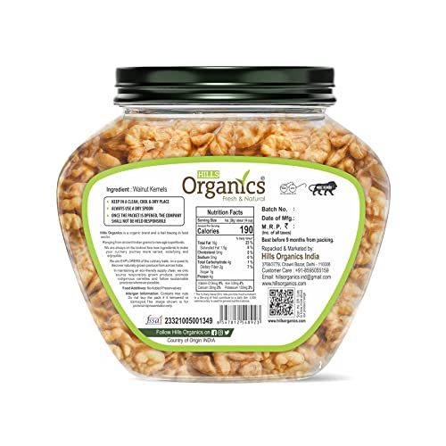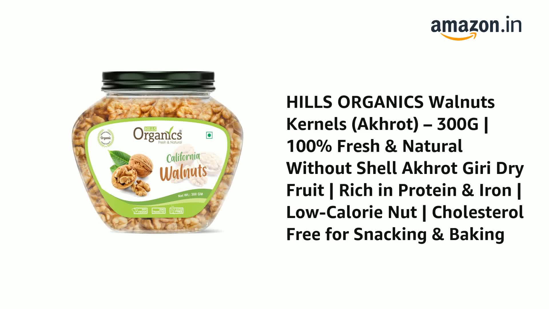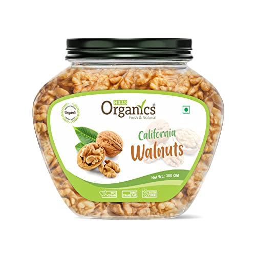 HILLS ORGANICS Walnuts Kernels (Akhrot) 300G | 100% Fresh & Natural Without Shell Akhrot Giri Dry Fruit | Rich in Protein & Iron | Low-Calorie Nut | Cholesterol Free for Snacking & Baking